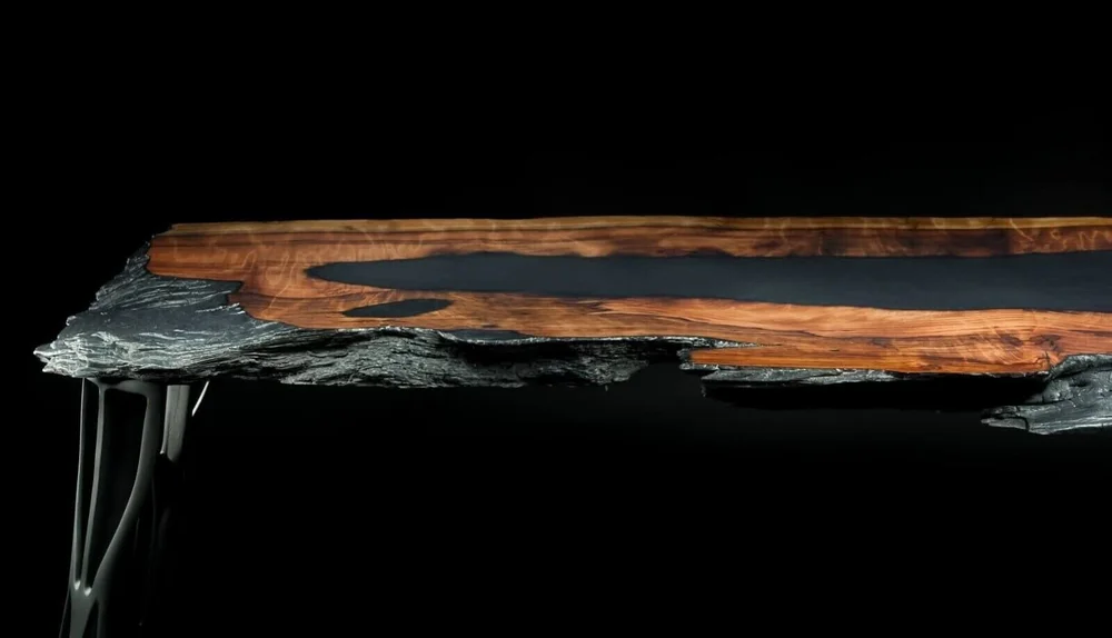 Due to the nature of the wood’s rot, once epoxy had been poured multiple leaks began springing up and pouring out through bottom of the table. In what can only be described as a race to save the epoxy; flex paste was used liberally to successfully manage all of the leaks. After a couple more weeks of drying, the epoxy had set successfully.