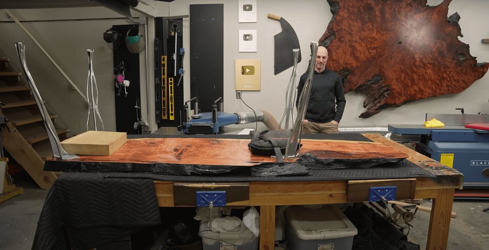 What started as a visit to Goby walnut to inquire about using their kiln to dry a seven foot wooly mammoth tusk that will be a part of an upcoming tusk restoration project; quickly turned into the beginning of a new project. When the good people at Goby Walnut offered up a slightly (very) damaged slab of Redwood, at a price that was too reasonable to pass up (entirely free) the idea to recreate a previous table arose.