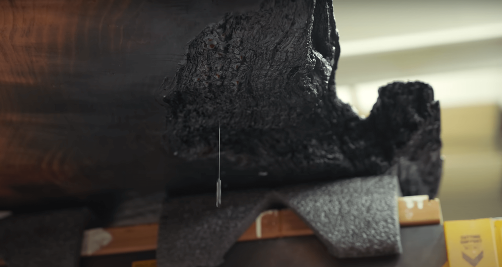 Burning wood within any proximity of your shop can be extremely dangerous, but due to the nature of this project; there was really no way to get around taking a flamethrower to the slab of redwood. That said, all of the precautions that can and should be taken were, in order to reduce the risk of injury and the loss of a shop. During the burning process the redwood seemed to hold its shape quite well, the operative word being “seemed”.
